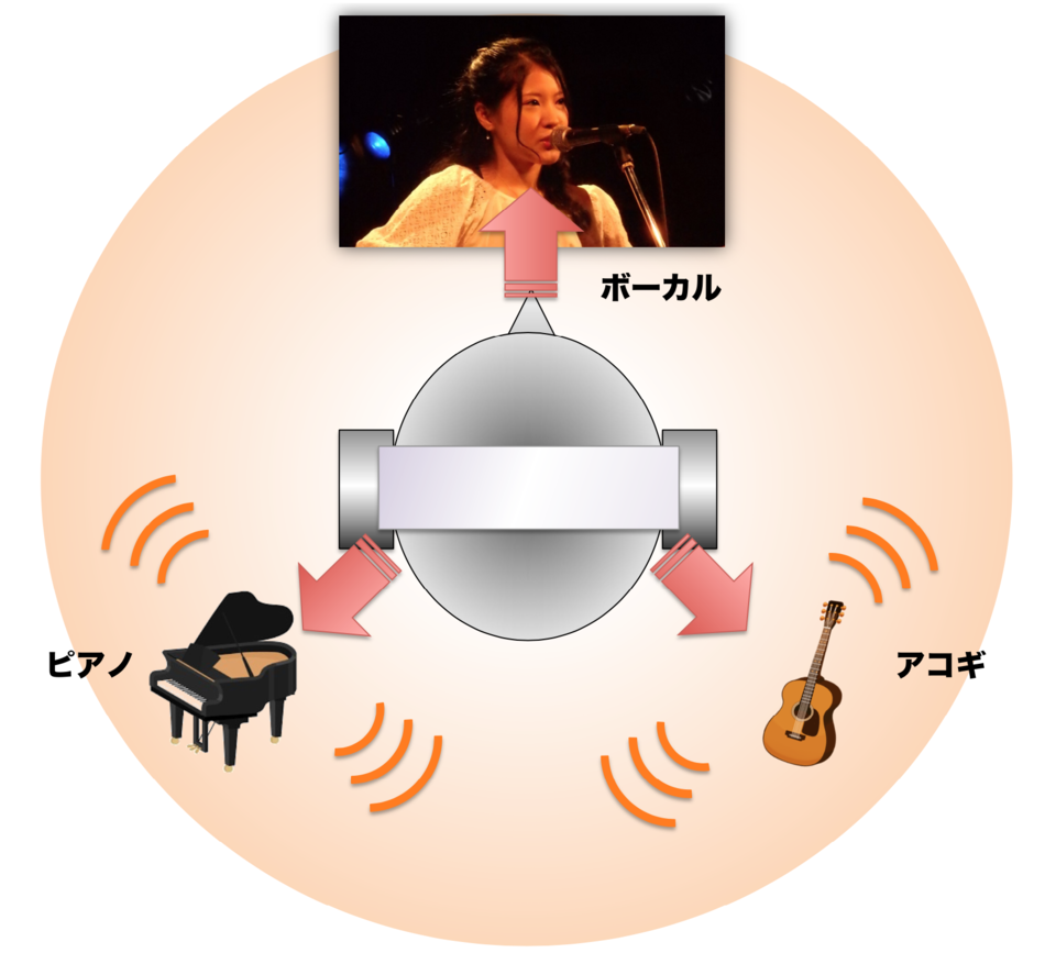 普段我々レコーディングミキサーがトラックダウン(複数の音源をまとめる作業)する時には、L(左)とR(右)の間の空間にそれぞれの楽器を”定位”させるのですが、この通常のミキシング手法ではヘッドフォンやイヤフォンでリスニングした時に音が頭の中で鳴っているような感じがします。これを専門的には『頭内定位』と呼んでいます。